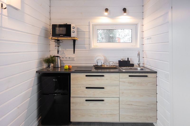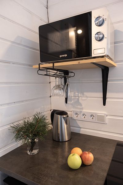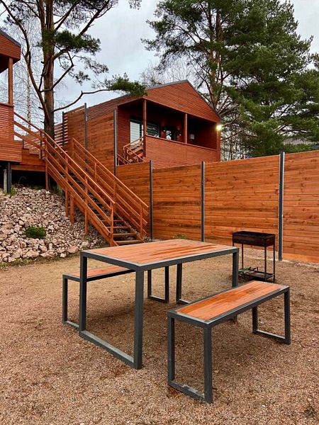 В доме одна комната, полностью оборудованная кухня для самостоятельного приготовления пищи, просторная терраса, есть мангальная зона.