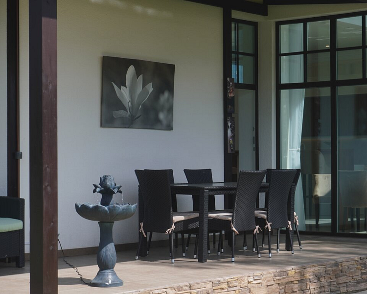 Рядом с чаном расположена уютная зона для отдыха с шезлонгами, где вы сможете отдохнуть после спа-процедур. Этот уголок спокойствия станет настоящим наслаждением для вас и ваших близких.