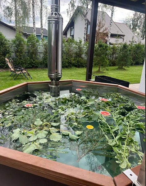 Позвольте себе насладиться расслабляющим спа-отдыхом на свежем воздухе в банном чане. Температура поддерживается на комфортном уровне, что способствует полному расслаблению. В воду добавляются натуральные травы и фрукты, что делает каждое погружение не только приятным, но и полезным для здоровья.