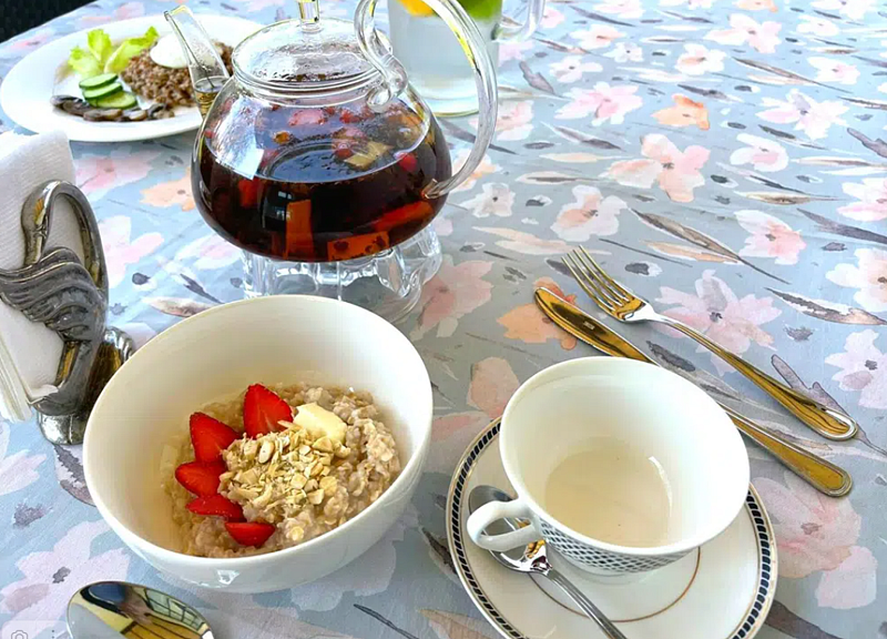 В зависимости от выбранного тарифа, завтрак может быть включен в стоимость проживания или же предоставлен за отдельную плату в размере 600 ₽. Кроме того, по согласованию и предварительному заказу могут быть предоставлены обеды и ужины.