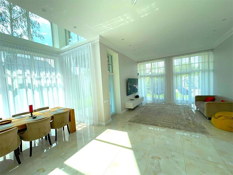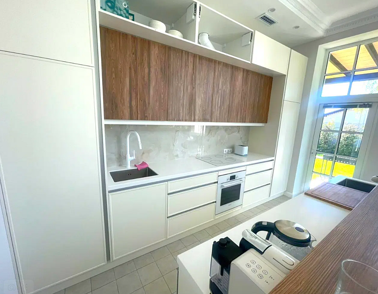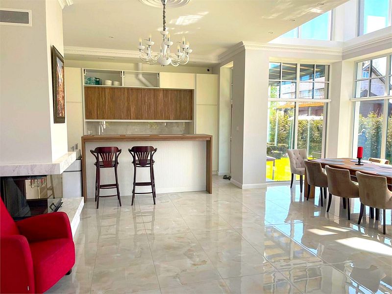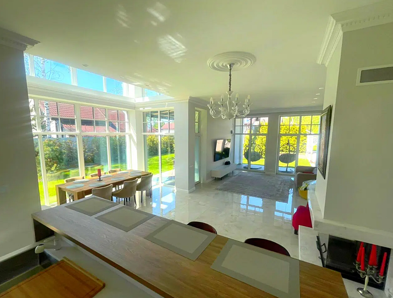 В общей зоне находится полностью оборудованная кухня и столовая с панорамными окнами, где каждое утро вас ждет вкусный и сбалансированный завтрак. Здесь вы сможете насладиться питательными блюдами, которые подарят заряд бодрости на весь день, создавая атмосферу домашнего уюта и тепла.