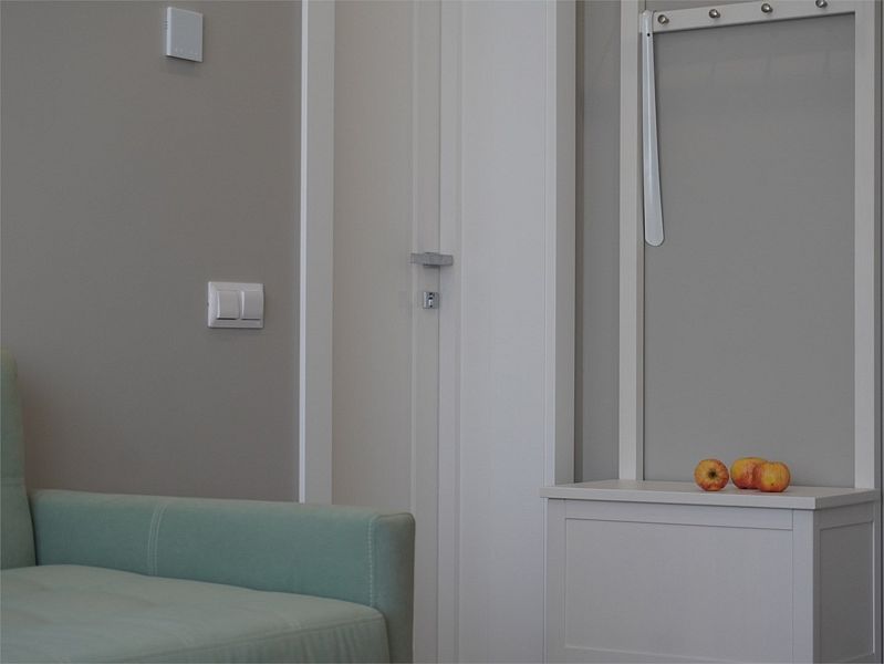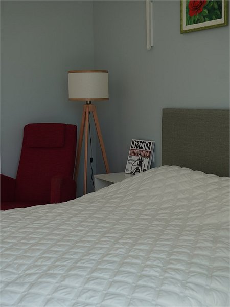 Большие семейный двухкомнатные апартаменты расположены на третьем этаже гостевого дома. В большой спальне — двухспальная кровать, во второй спальне — две односпальные кровати.