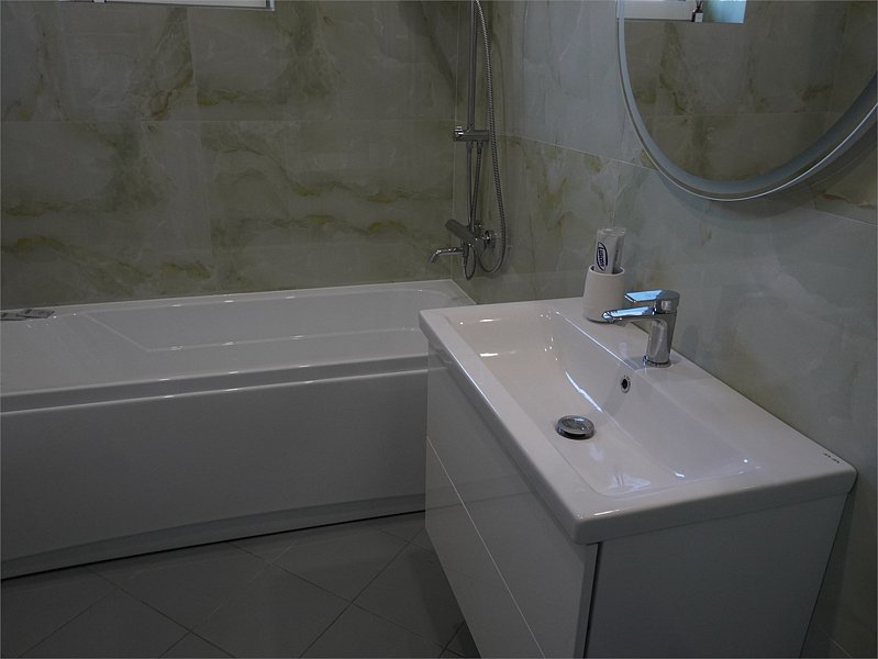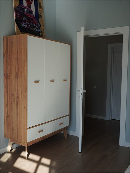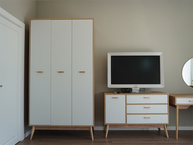 Двухкомнатный номер подходит для полноценного трехместного размещения. В большой комнате находится большая двухспальная кровать, вся необходимая мебель и ванная комната. В маленькой комнате — односпальная кровать.