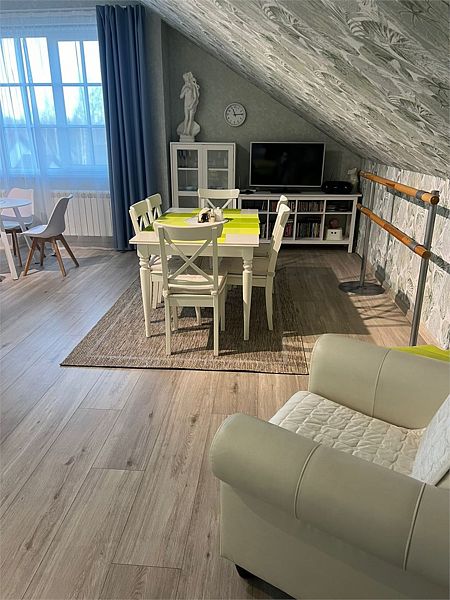 Гостевой дом «Дони-парк» представляет собой идеальный загородный отдых в трёхэтажном доме с восемью спальнями, вмещающим до 18 человек. На первом этаже вас ждет светлая и просторная гостиная с камином, а также уютная столовая с панорамными окнами, открывающими великолепный вид на террасу. Второй этаж предлагает тихую библиотеку, которая станет идеальным местом для уединенных чтений и наслаждения окружающим пейзажем.
