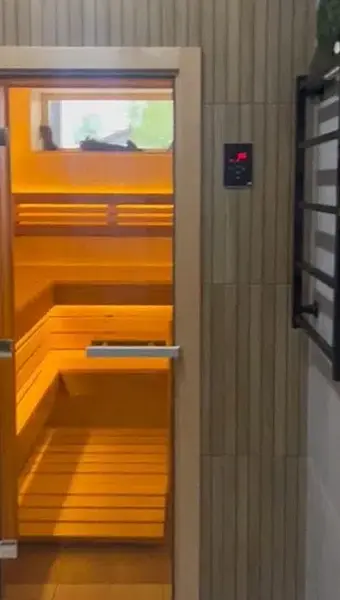 Для вашего комфорта рядом располагается уютная зона отдыха с душем и выходом на террасу, где можно наслаждаться свежим воздухом и красотой окружающего пейзажа. Этот уголок для релаксации станет идеальным местом для восстановления сил и гармонии с собой.Вы также можете воспользоваться предложением и заказать целый спа-комплекс, включающий в себя арома-сауну, банный чан, расположенный на свежем воздухе, и холодную купель. При бронировании проживания от двух суток бесплатно предоставляется час пользования сауной.