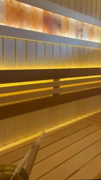 Читать полностьюВ арома-сауне вас ждет гималайская солевая панель и талькохлорит. Полки, уставленные букетами ароматных трав, наполняют пространство тонкими ароматами, погружающими в атмосферу покоя и умиротворения, что прекрасно успокаивает нервную систему и восстанавливает внутреннее равновесие.