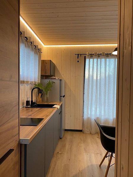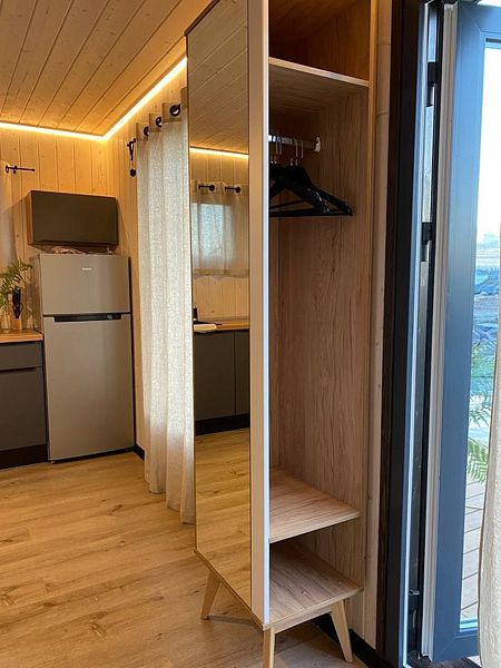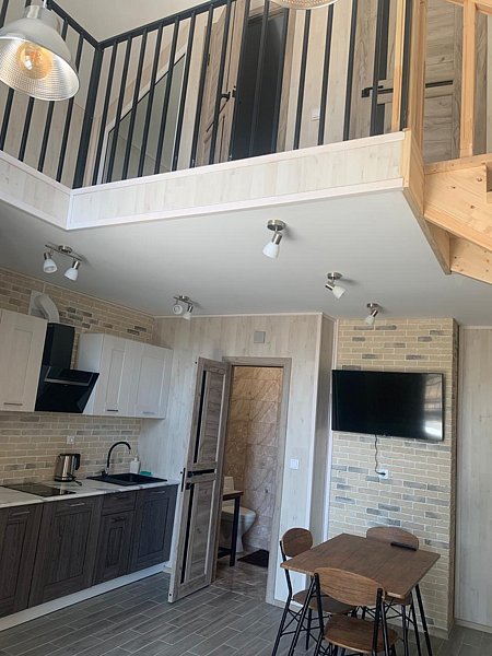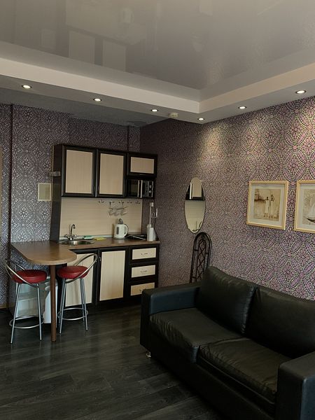 - Собственной мини-кухней (эл. чайник, СВЧ печь, плитой, всей необходимой посудой);
