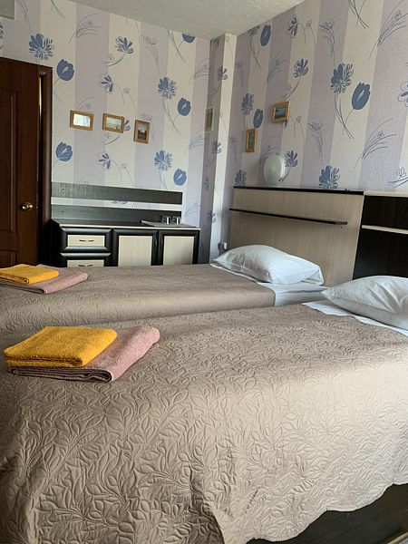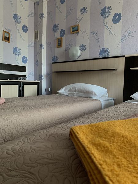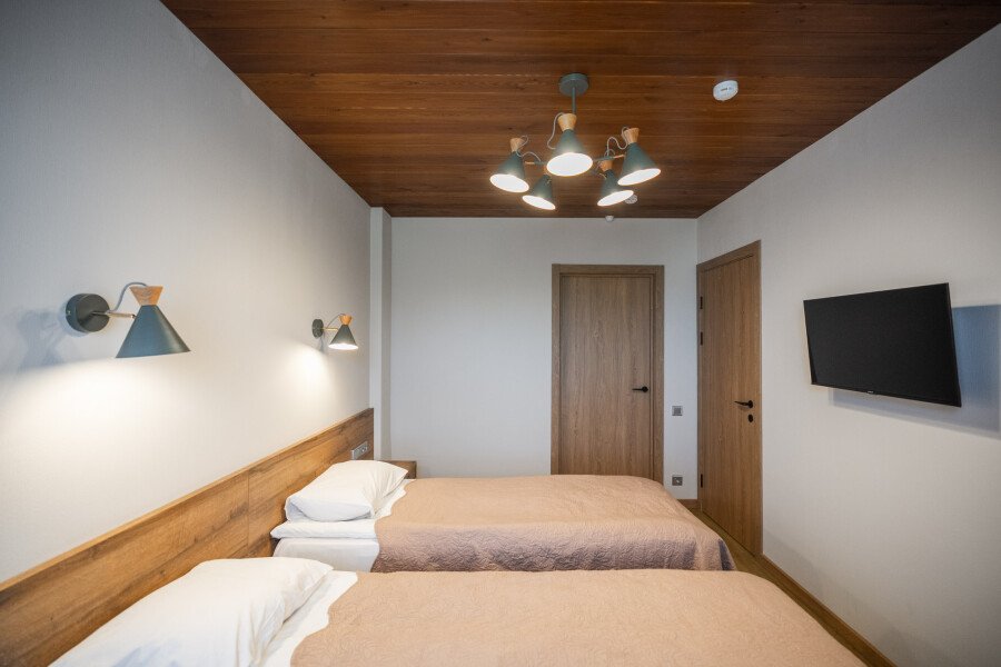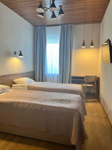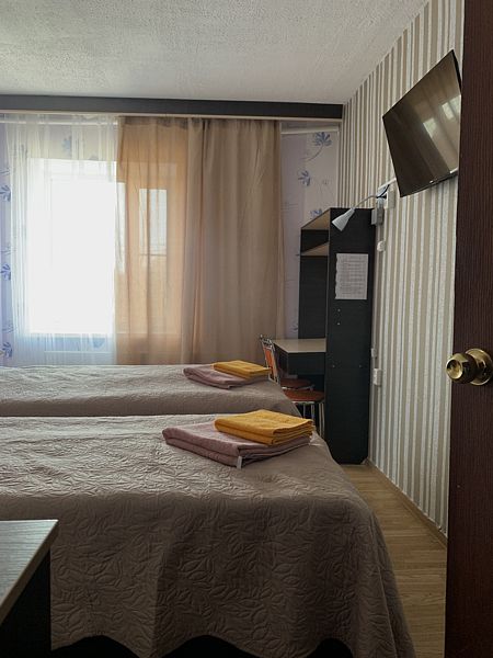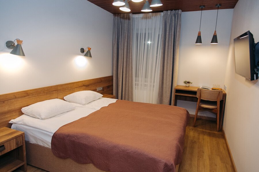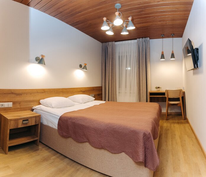 Просторные и уютные номера в тёплых тонах, выполнены в классическом эко-стиле, прекрасно подходят как для работы, так и для отдыха. Для Гостей в номере имеется две раздельные кровати с ортопедическим матрасом, плазменная панель, интерактивное спутниковое телевидение, гардероб, письменный стол. Ванная комната европейского стандарта оснащена душем, феном, туалетными принадлежностями.