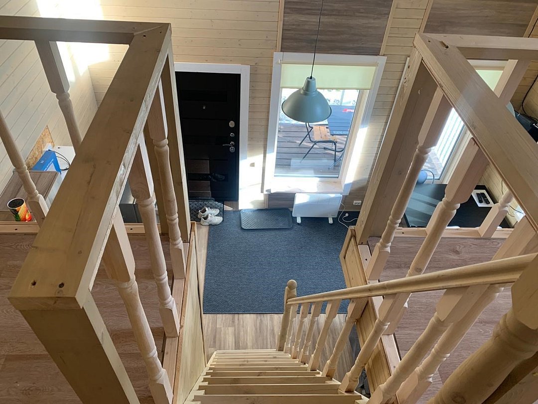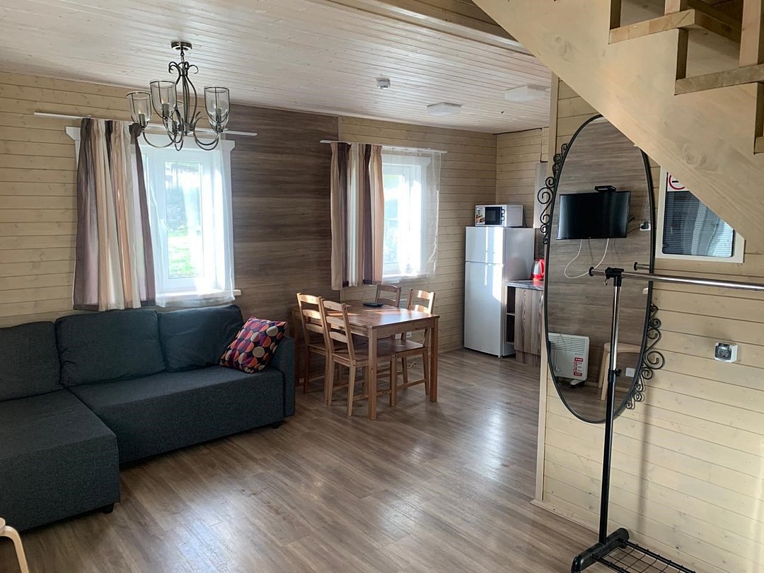 Дом с двумя спальнями. Гостиная с угловым диваном расположена на первом этаже, также на первом этаже есть душ, санузел и электрическая сауна. На втором этаже две спальни, одна спальня с двуспальной кроватью и балконом, вторая с двуспальной кроватью и диваном. На втором этаже есть второй туалетПолулюкс