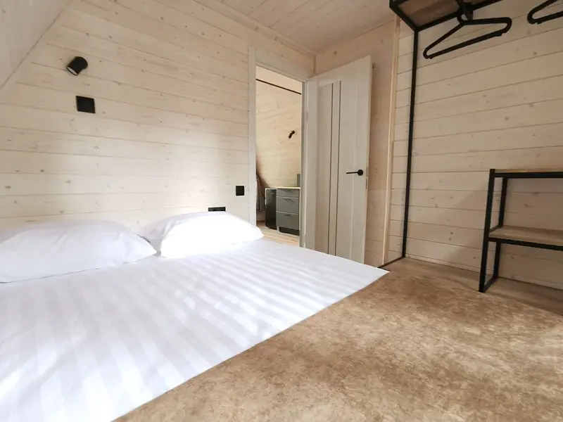 В доме 2 спальни. Оборудованы двуспальными кроватями 160*200см. Не трансформируются в полуторные. В каждом номере есть душевая и туалет. Возле домика находится личная, полностью оборудованная мангальная зона.