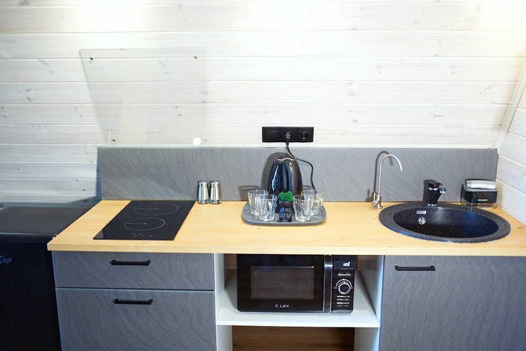 Дом оборудован современной кухней, со всей необходимой бытовой техникой (СВЧ, плита, холодильник, чайник, фильтр для питьевой воды), посудой для приготовления блюд и сервировки стола и напитков. Телевизор. Wi-Fi. Есть кондиционер и теплые полы. Бойлер. Терраса с уличной мебелью.