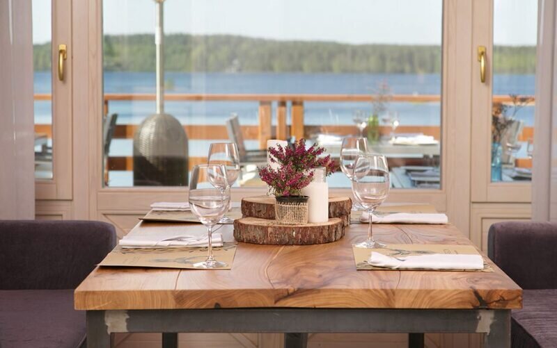 Ресторан «Вереск» в каждой детали вдохновлен чистотой и естественностью природы. Панорамный вид на сосновый лес и берег озера, оборудованные террасы и спуски к воде, много дерева в интерьерах и комфорт в каждой детали. Атмосферу ресторана и непреодолимое желание возвращаться к нам почаще создает фирменный дружелюбный сервис от каждого члена команды.