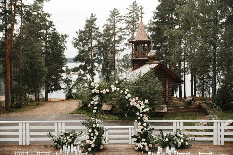 - свадьба на берегу живописного озера;