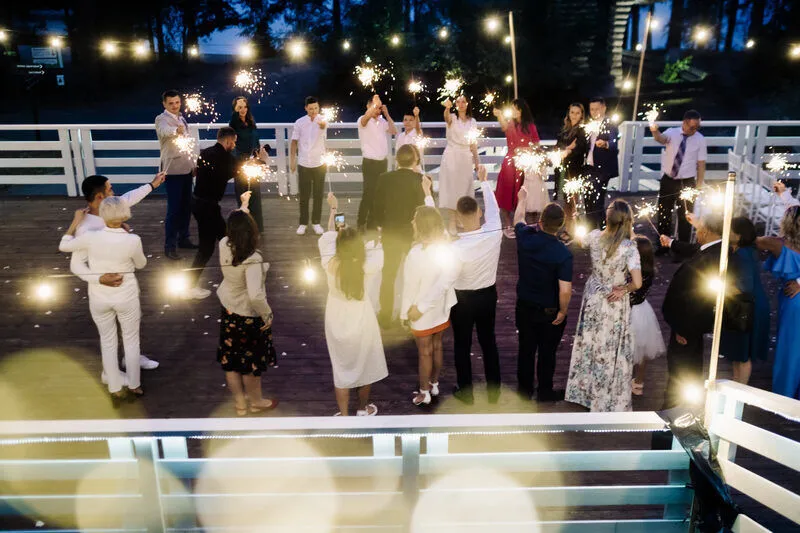 - на сладкое — фейерверк-шоу! Завершим торжественный вечер грандиозно: яркие фейерверки, взмывающие в небо воздушные шары!