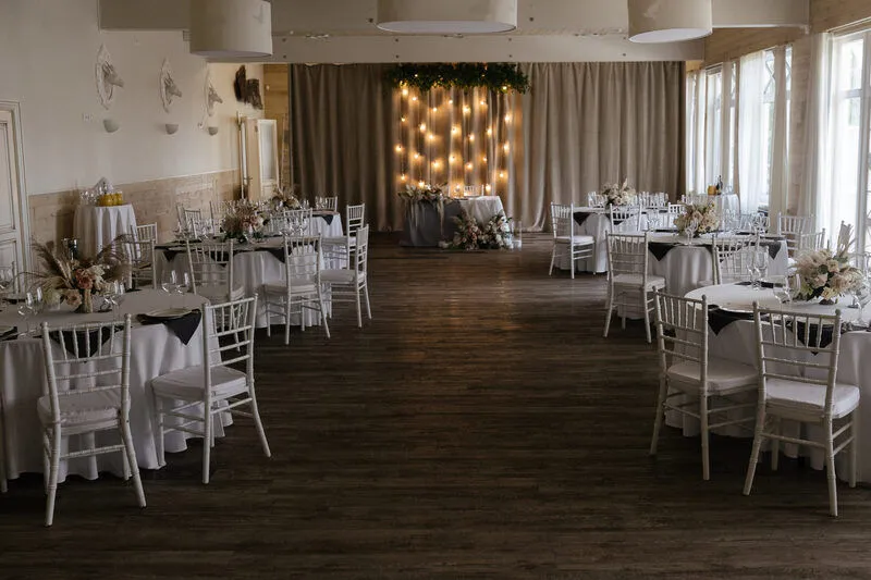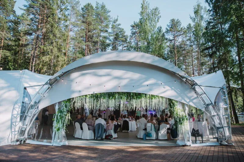Проведите самый незабываемый день в одном из наших банкетных залов: всесезонный зал «Вереск» или летний шатер «Линтула».