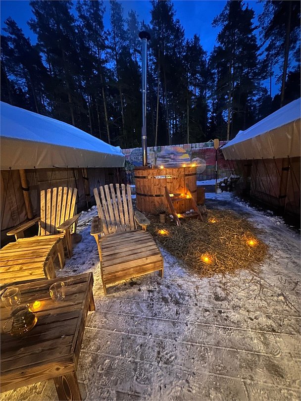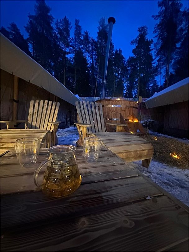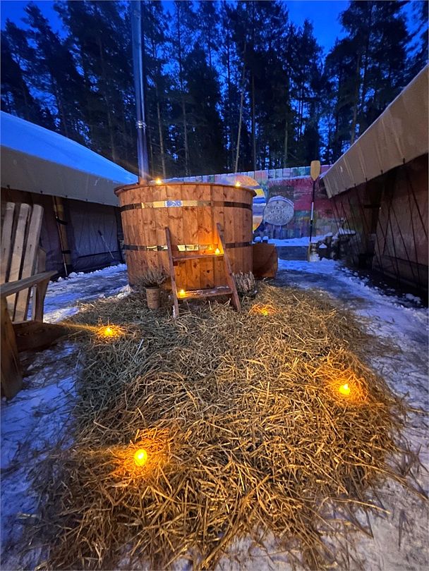 - горячая купель с видом на озеро (1 топка купели входит в стоимость проживания от 2 ночей)