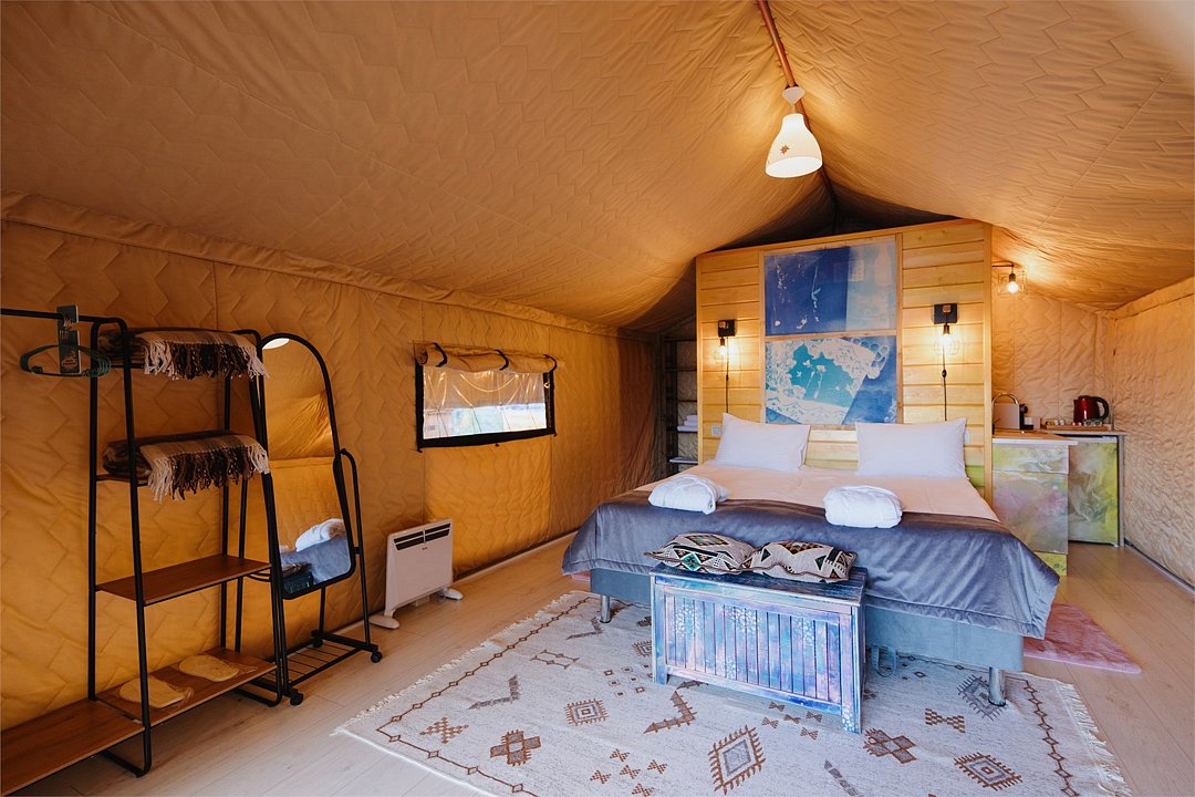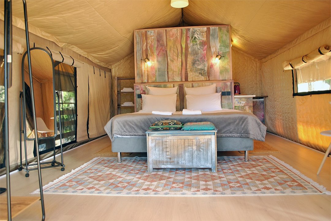 Сафари‑лодж на холме с видом на озеро — атмосферный глэмпинг с авторским интерьером.