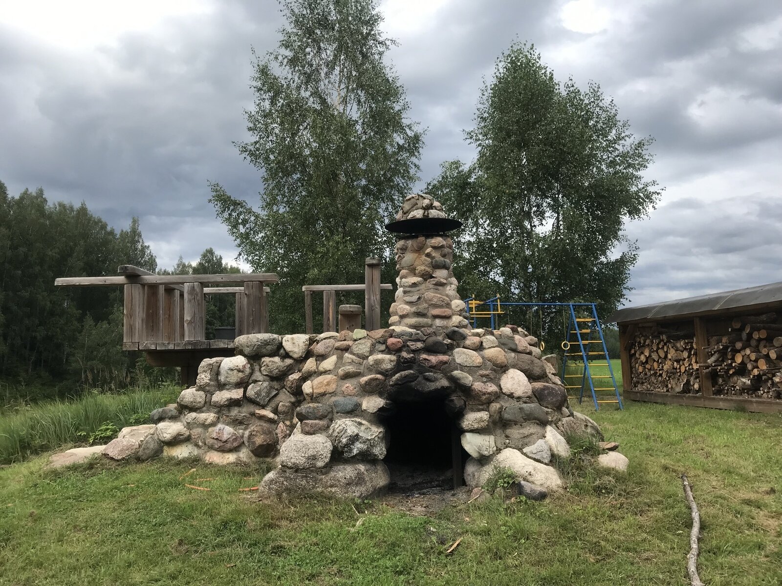 Арендовав беседку, Вы можете прекрасно провести время на природе, прогуляться в лесу, искупаться в речке поблизости, поглядеть на животных на ферме, пожарить шашлыки, закоптить рыбу или курицу, приготовить обед на плите или на костре. Дети смогут поиграть на детской площадке с горками и качелями, попрыгать на батуте.