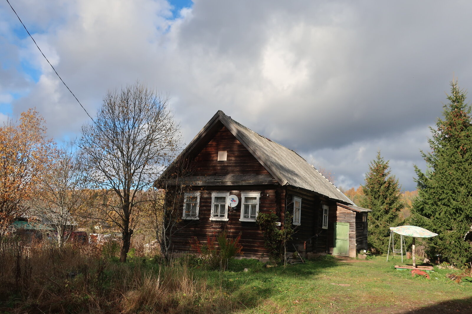 Небольшой, но уютный гостевой дом, весь из дерева и мебель в нём деревянная. Имеется 2 двуспальные кровати, и обеденная зона, стол-стулья, кухонные шкафчики. Рассчитан на 1 семью (2 взрослых, 2 детей). Рядом беседка и летняя кухня с костровищем, мангалом, газовой плиткой, посудой. Есть туалет, умывальник, летний душ. Для ребятишек — детская площадка с горками, качелями, батутом.