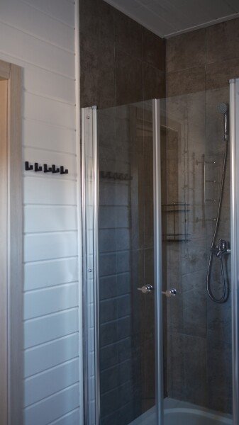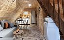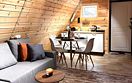 спальня с двуспальной кроватью, 2 двуспальных матраца под крышей, диван, с/у, душ, мини-кухня