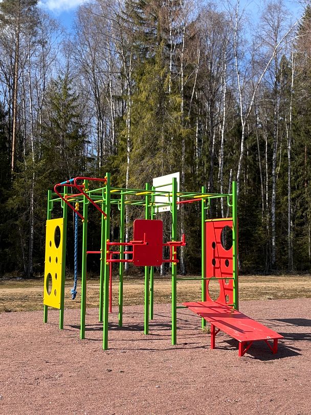 Дети могут весело провести время на детской площадке на пляже у озера.