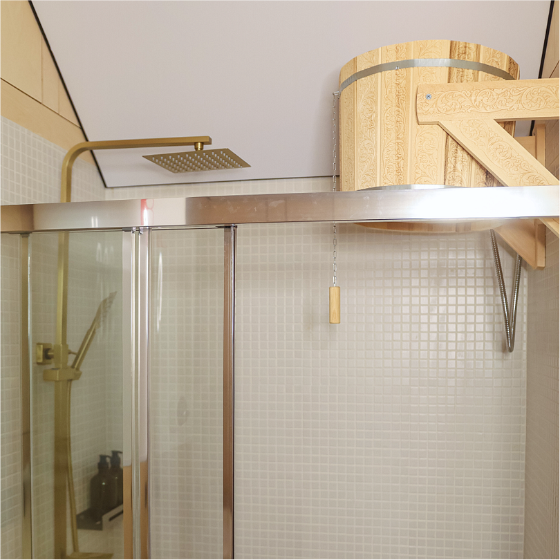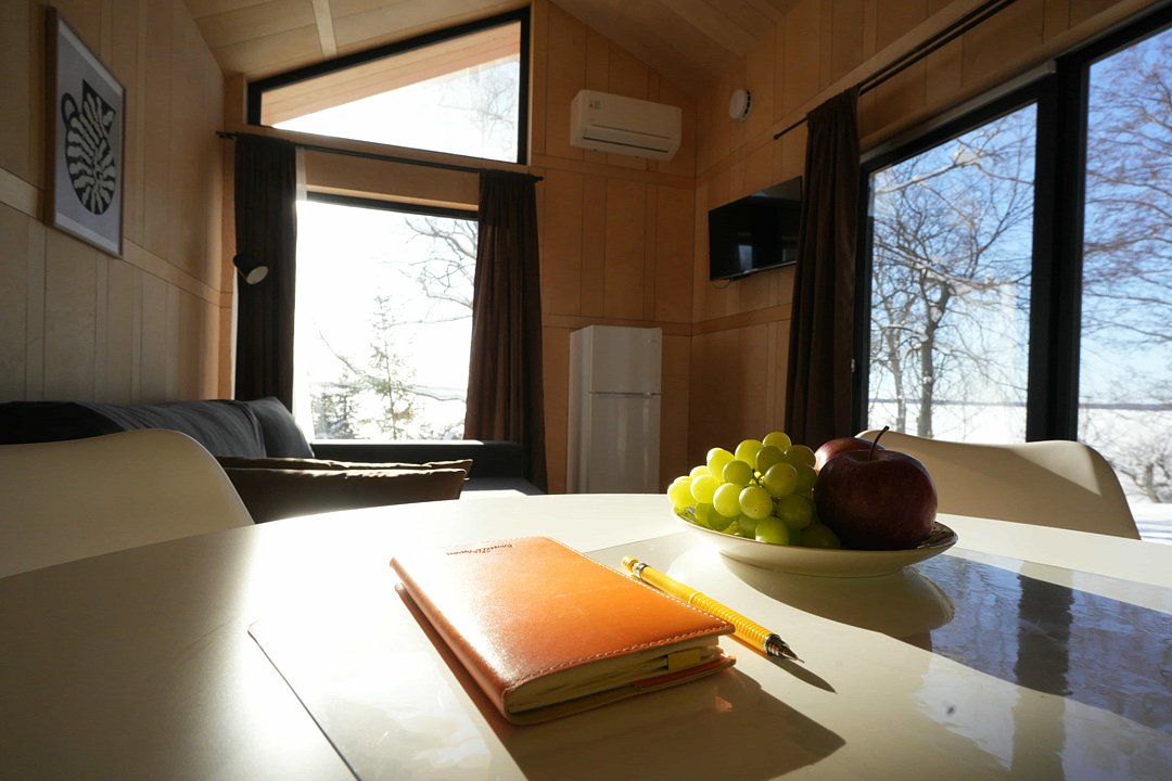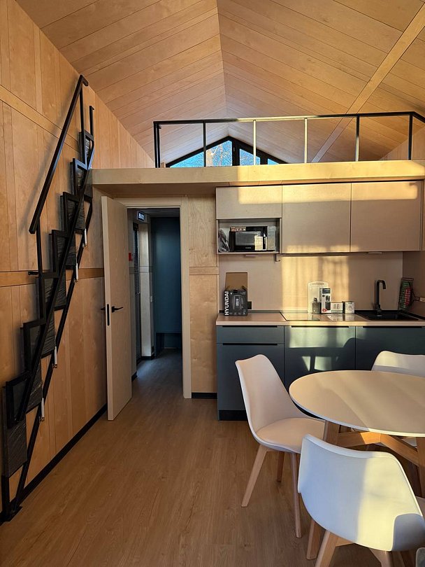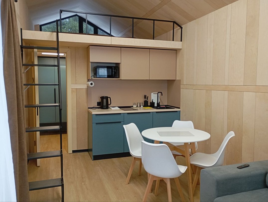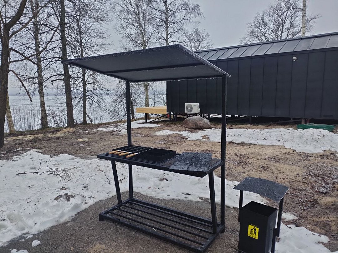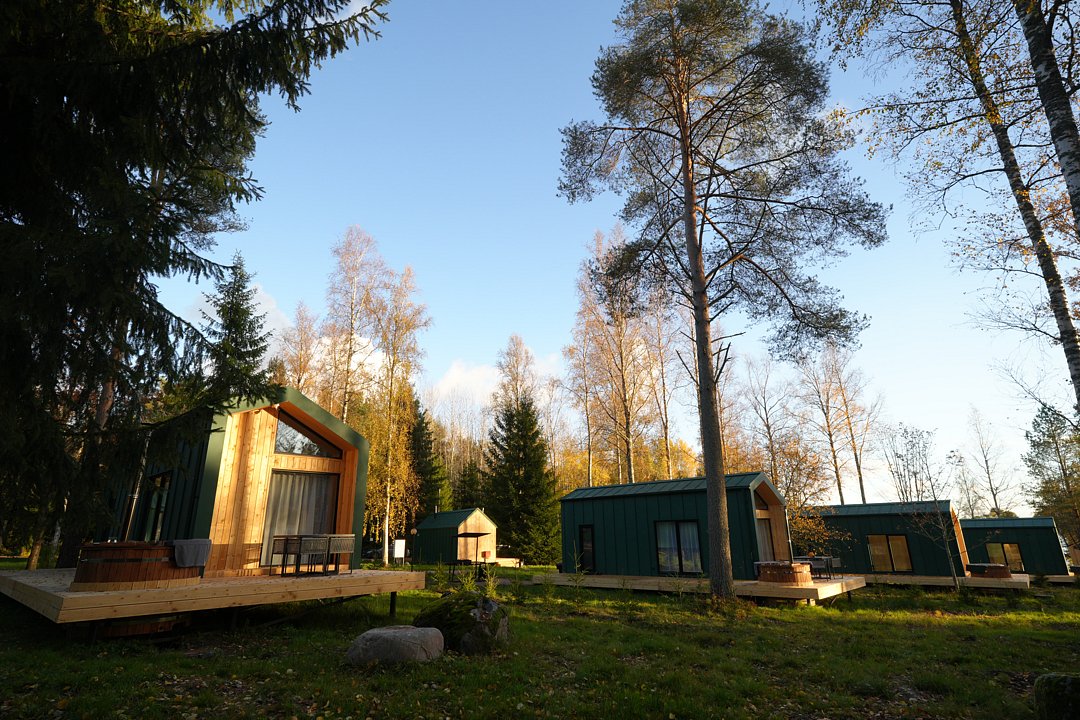 Для комфортного проживания для вас подготовлены стильные и уютные барнхаусы с панорамными окнами. В каждом из них есть оснащенная кухня, ванная комната и собственная купель на террасе. Также имеется телевидение и Wi-Fi.