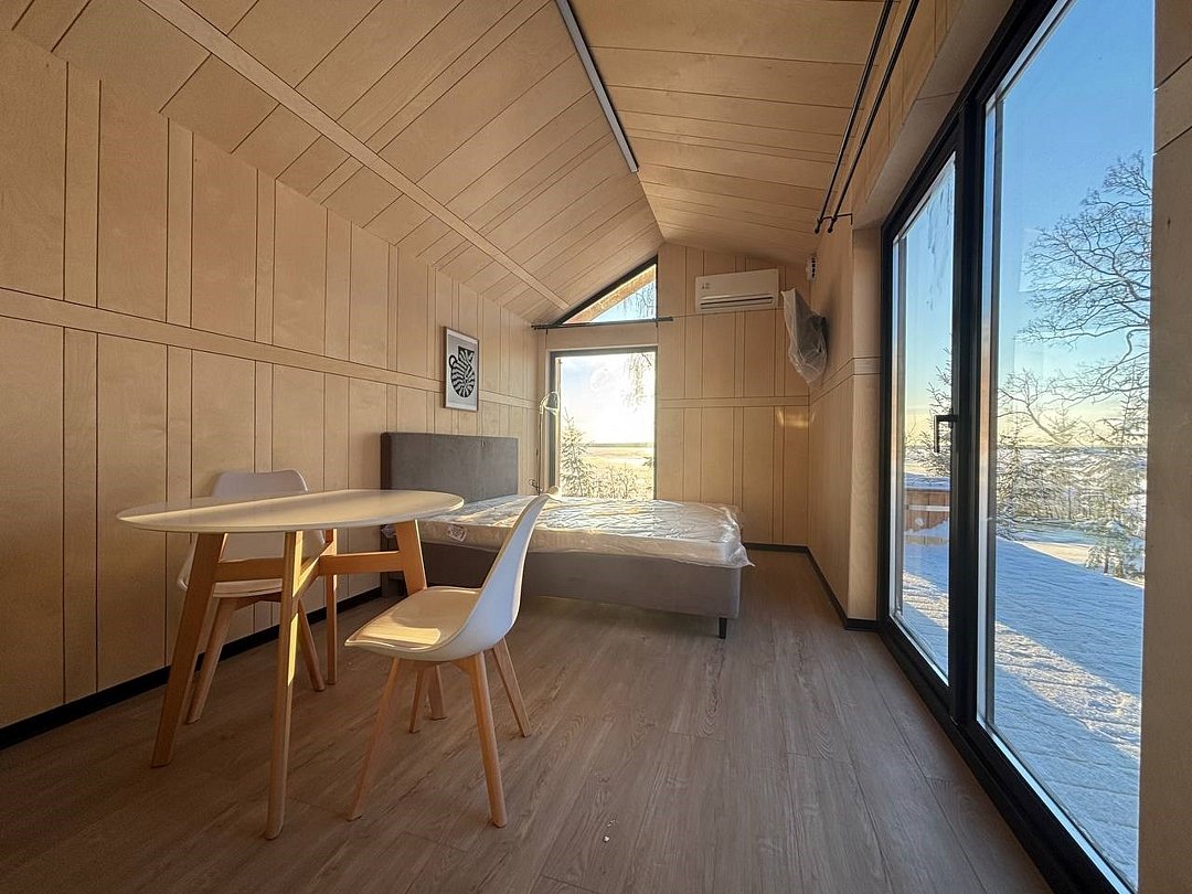 С видом на живописный лес и озеро! Дом рассчитан на 2 человека, с возможностью размещения до 2-х доп. гостей.