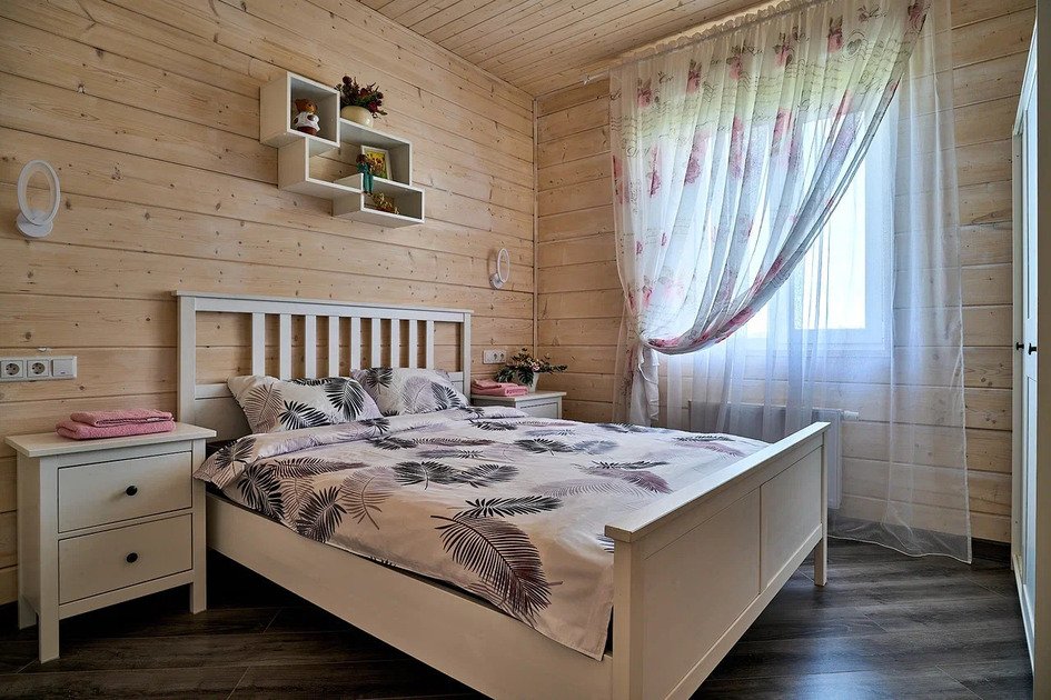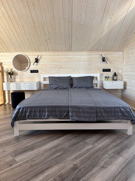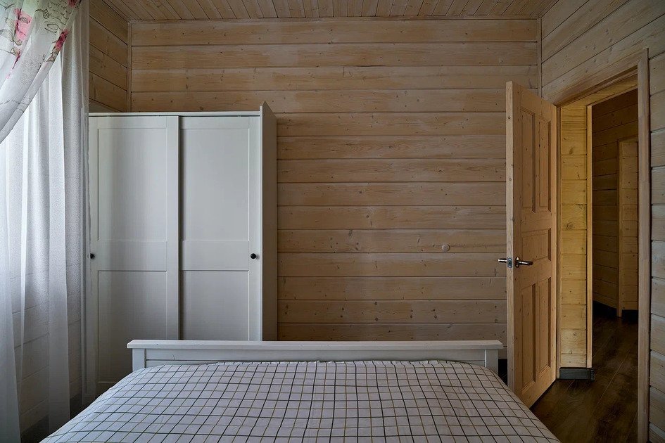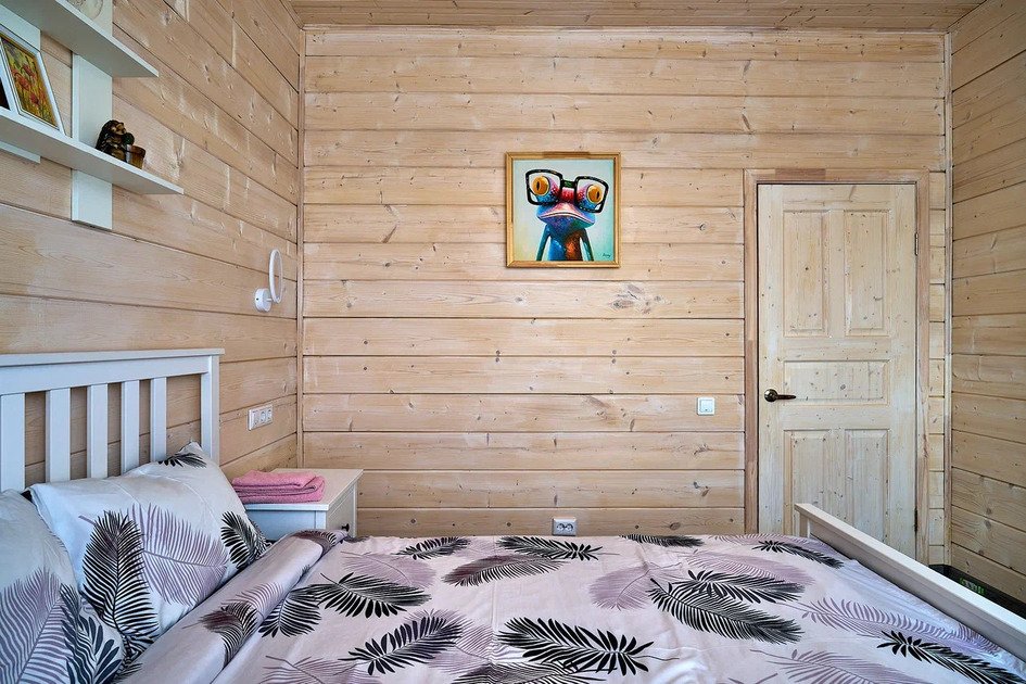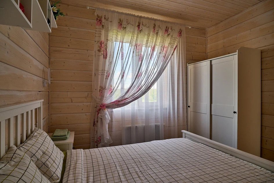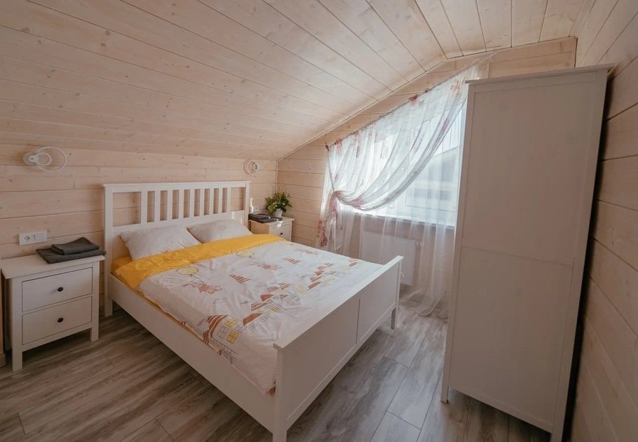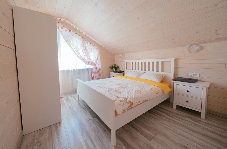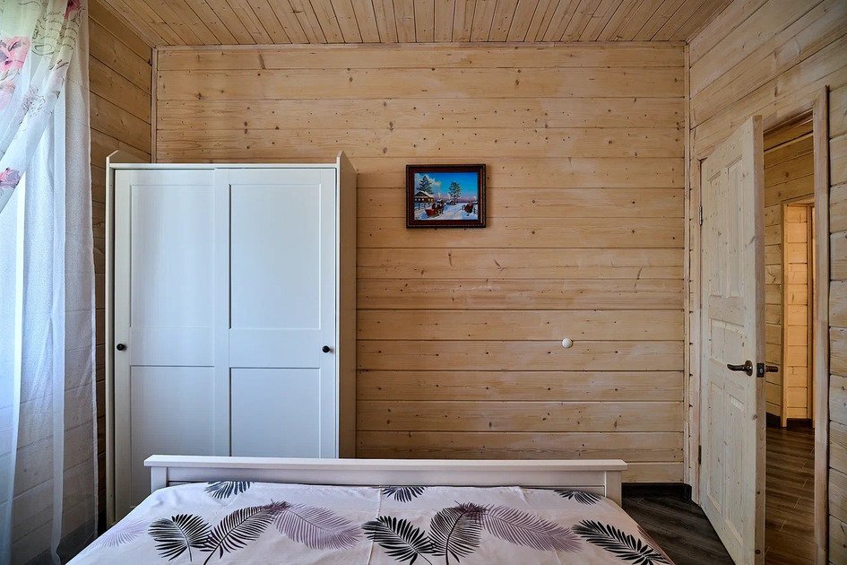 Второй этаж коттеджа – это место отдыха и сна. На нем располагаются 4 отдельные спальные комнаты с двуспальными кроватями и шкафами для хранения личных вещей. Для малышей имеется детская кроватка.