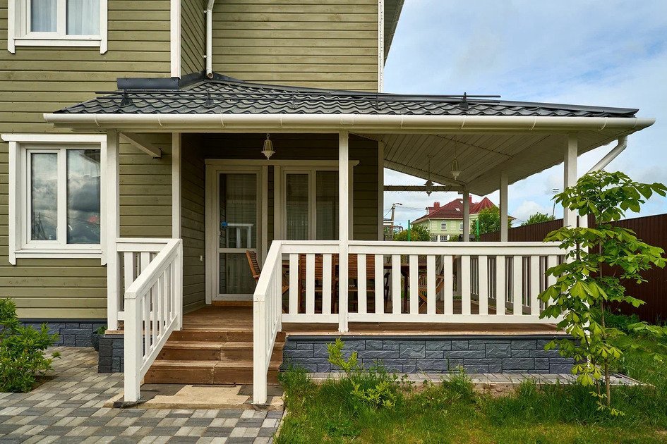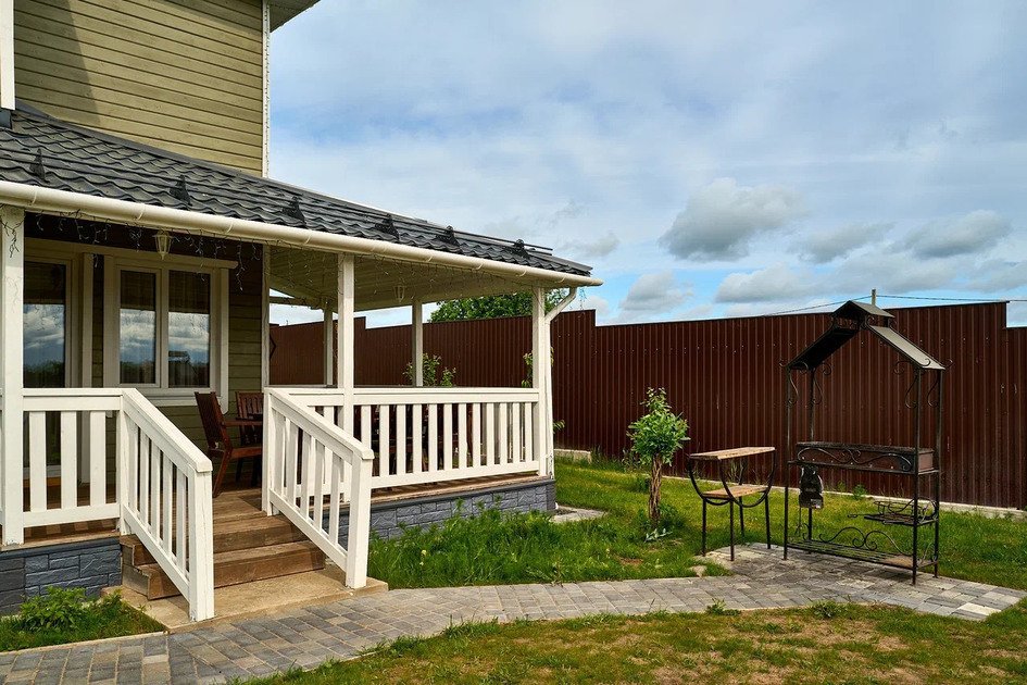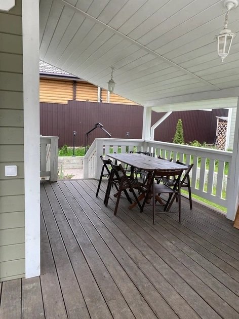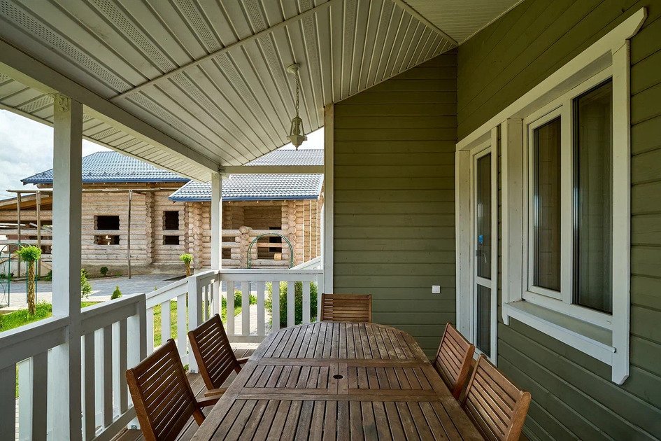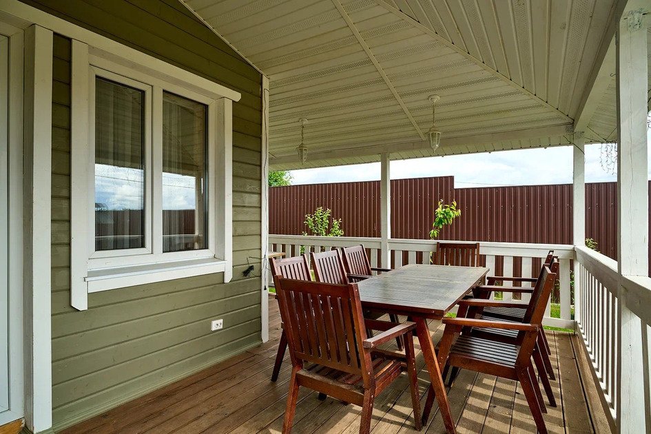 Неотъемлемой частью нашего коттеджа является просторная веранда. Здесь вы сможете насладиться утренним кофе, отдохнуть в креслах с любимой книгой или просто наслаждаться прекрасным видом на лужайку. Прекрасно подойдет для семейного обеда или встречи с друзьями.