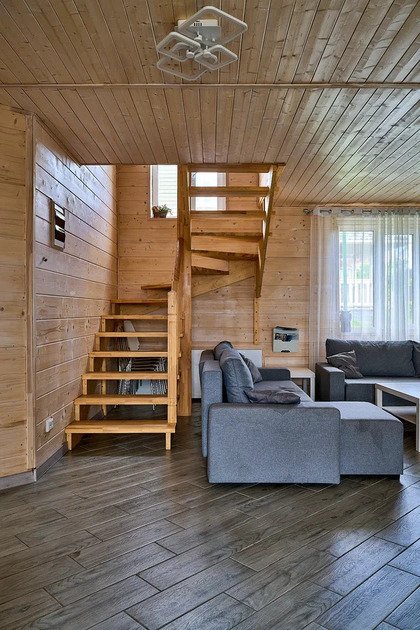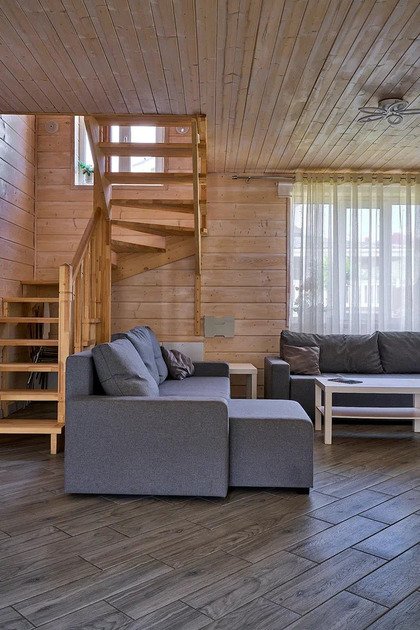 На втором этаже дома — две изолированные спальные комнаты и просторный каминный зал, где можно собраться всей семьей и поиграть в преферанс или настольные игры под тресканье дров в камине.