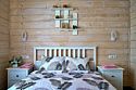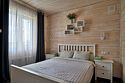Коттедж площадью 131 кв. м полностью оборудован для комфортного пребывания: просторная кухня со всей необходимой техникой (варочная панель, СВЧ, ПММ, холодильник, кофеварка, электрический чайник, вытяжка), большой обеденный стол, стулья для 9 гостей и открытая терраса. В данном коттедже имеется пять изолированных спален. На втором этаже располагаются 4 спальни + кроватка для младенца. На первом этаже имеется одна спальня с односпальным диваном. Для размещения двух дополнительных гостей в гостиной имеется раскладной диван.