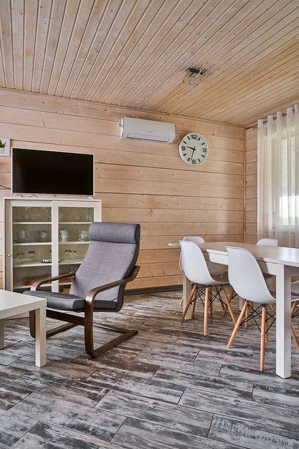 Просторные коттеджи оборудованы сауной, верандой, зоной для барбекю и детской площадкой — всё для комфортного отдыха или работы. Это пространство для общения, расслабления и зарядки новыми силами.