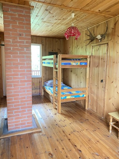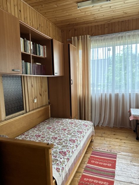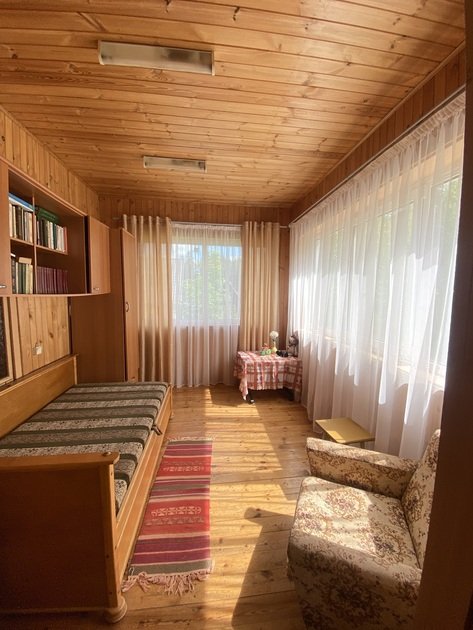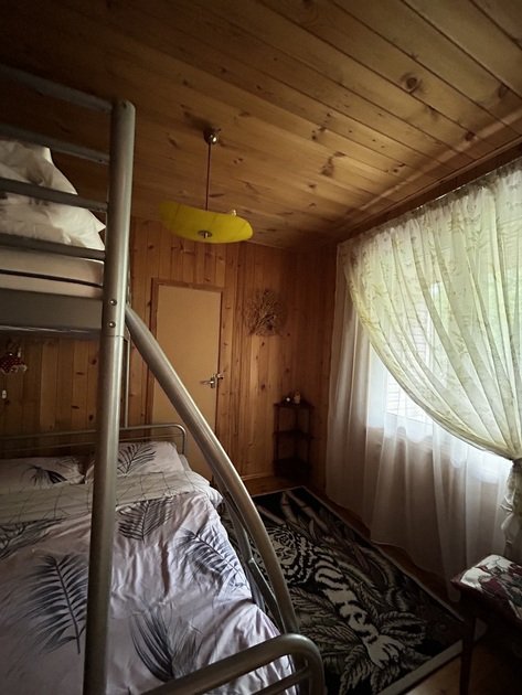 На третьем этаже также располагаются две изолированные спальни с двуспальными кроватями. А в проходной комнате — двухъярусная кровать. Из комнаты можно выйти на балкон. Дом граничит с лесом. В летний период грибы и ягоды будут вам обеспечены. Неподалеку располагаются Лемболовские озера, где можно порыбачить и искупаться.