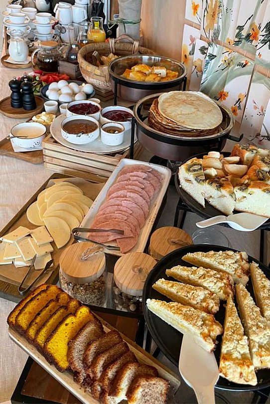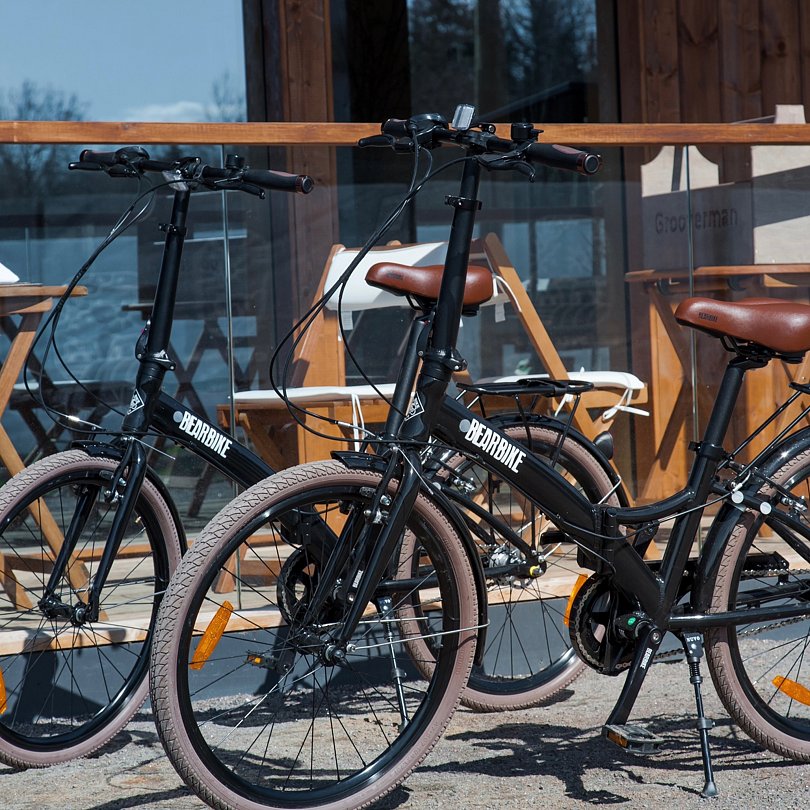 На территории комплекса есть спортивные площадки, баня, купель, гриль-беседки, зал-театр и ресторан, где шеф-повар предлагает исключительно вкусные блюда, приготовленные из свежих фермерских продуктов.
