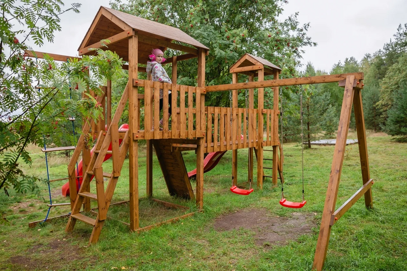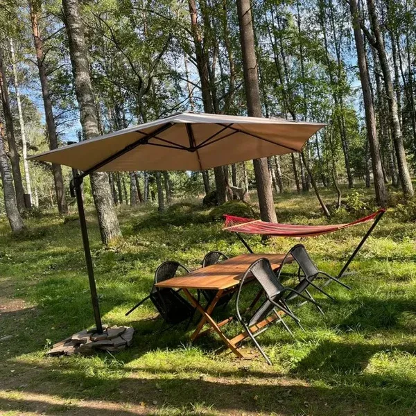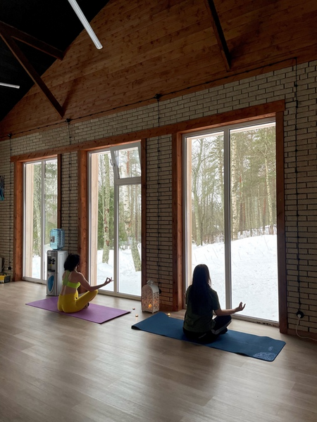 На территории базы отдыха есть пространство для занятий фитнесом и йогой!