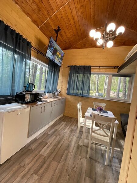 Семейный отдыхДостоинстваЦена качество все совпадает! В ресторане отличный персонал! На территории может быть кому то скучновато будет, смотря кто чего ждет… нам все понравилось! Мы были вдвоем, отмечали годовщину свадьбы, нам было весело) самое главное домики чистые! Уютные! Музыка ночью не орет, хотя может и хотелось🤣 до озера мы не дошли, далековато, но было прохладно, и шел дождь, в хорошую погоду думаю 20-30 минут можно и прогуляться! Администратор вообще молодец, очень приветливый!! В домике есть все и тапочки и зубные щетки.. понятно что в наше время это уже норма, но тут ценник ультра эконом) поэтому мы не ждали что все будет вот так, подготовились к худшему 🤣🤣🤣 ну конечно если бы это стоило тыщ 12-15 я бы нашла к чему придраться, но за 6 это было очень круто!