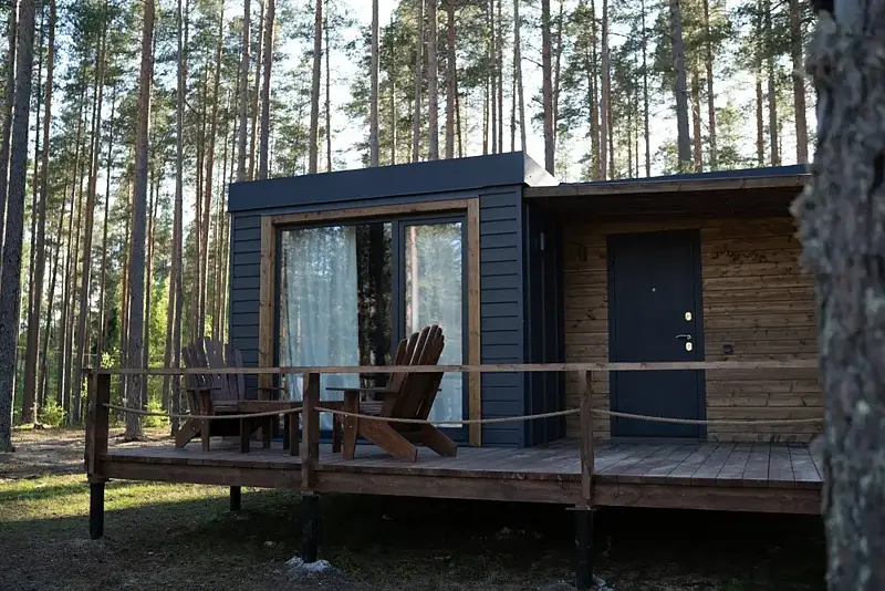 В Выборгском районе, в 50 минутах езды от Санкт-Петербурга по трассе Скандинавия, находится глэмпинг комфорт-класса «Forest Lake».