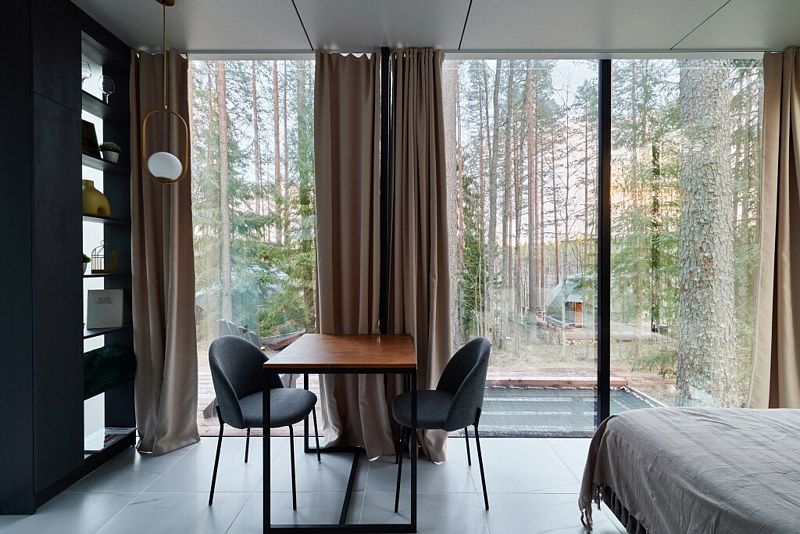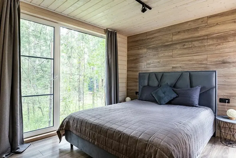 - большое панорамное окно на волшебный лес и озеро;