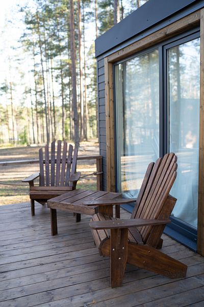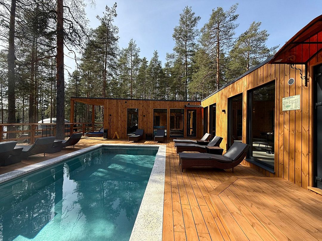 На террасе оборудован спуск в озеро, чтобы вы могли погрузиться в полезные радоновые воды сразу после парной.