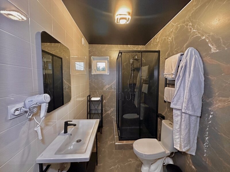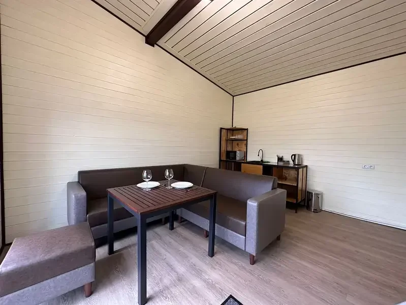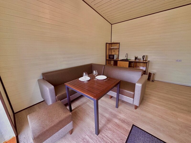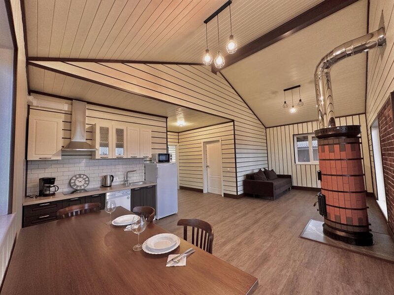 Данный коттедж рассчитан на размещение до 6 человек. Для Вашего сна имеются 4 полуторных кровати или две двуспальные — на Ваш выбор, и двуспальный диван. Современное оснащение и уютный дизайн. Лучший выбор для Вашего отдыха.