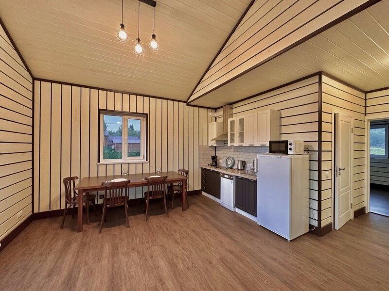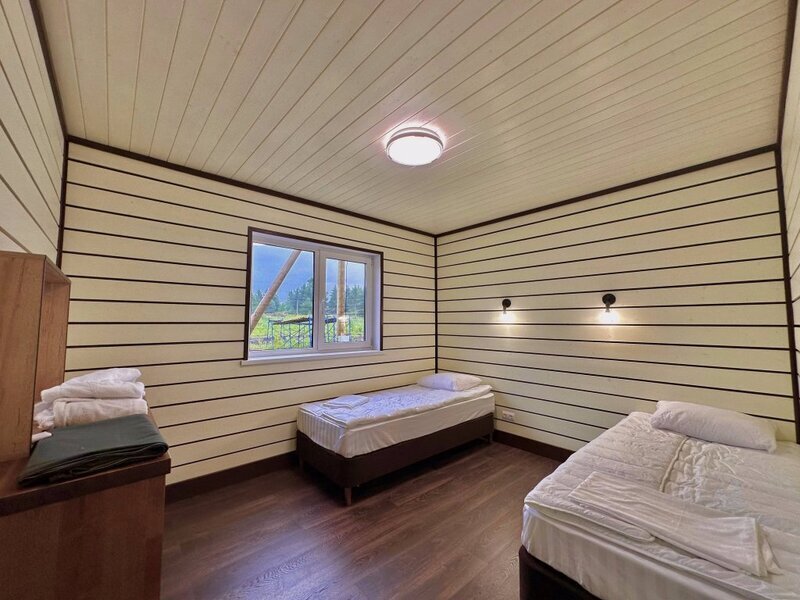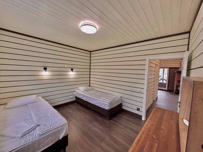 Данный коттедж рассчитан на компанию до 8 человек. Для Вашего сна имеются 4 полуторных кровати и 2 двуспальных. Вид на реку Свирь и вечера у камина дадут максимальное погружение в атмосферу спокойствия и отдыха.