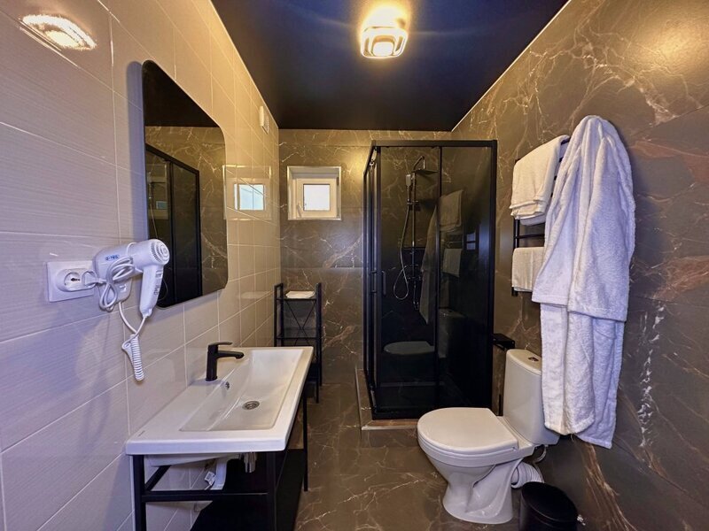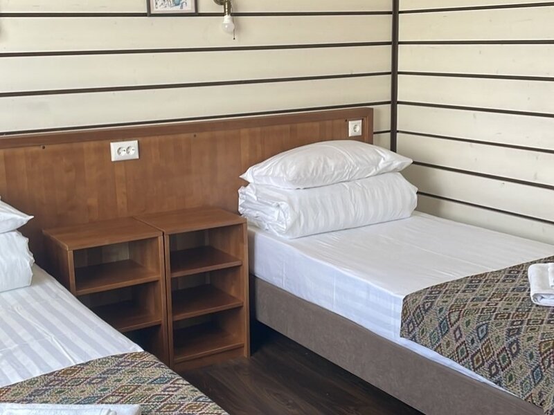 Небольшая гостиница на пять номеров с односпальными одно- и двухъярусными кроватями, общим санузлом и душем.