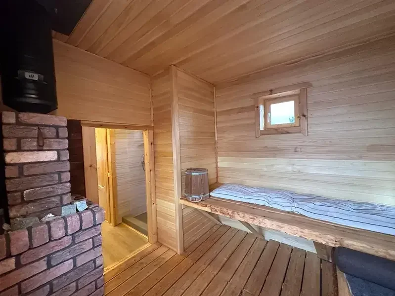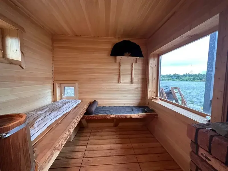 Бани оборудованы инновационными и стильными печками Grill’D Retro которые дают непревзойденный мелкодисперсный пар. Для гостей приготовлены душистые травяные матрасы, полки из дикого кедра, оборудованные системой свежего дыхания и еще много других банных фишек, которые позволят вам получить истинное наслаждение от посещения нашего банного комплекса. А из большого окна парилки открывается потрясающий вид на реку Свирь с проплывающими мимо теплоходами. После парения можно окунуться в холодные воды Свири со специально оборудованного пирса или же наоборот, посидеть в расслабляющем чане Фурако.