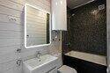 - В ванной есть гель, шампунь, мыло в диспенсерах и фен.