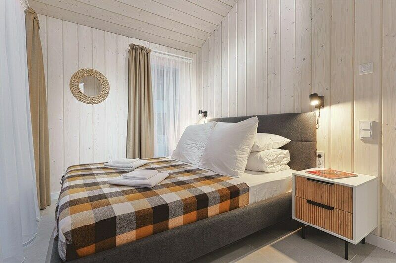 Дом рассчитан на 4 (+2) человек, две спальни и большая гостиная.