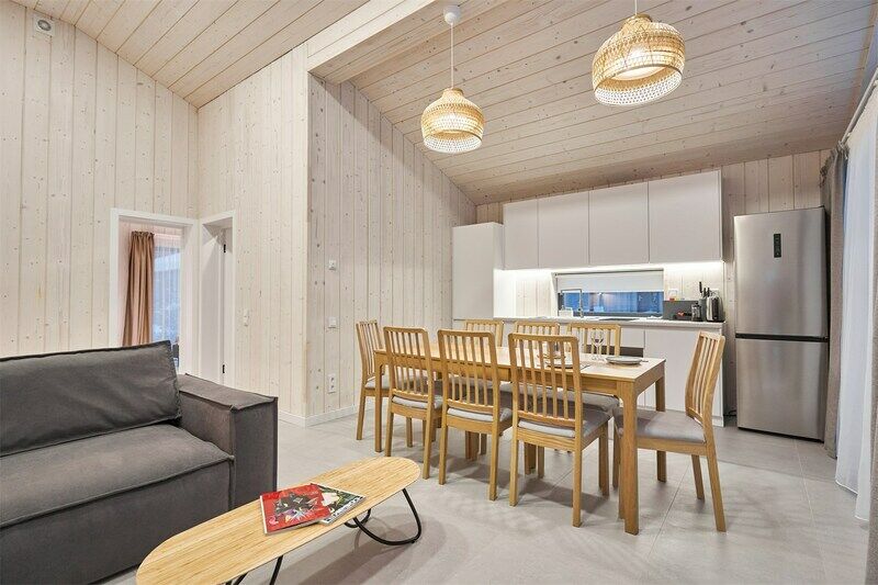 Дом рассчитан на 6 (+2) человек, три спальни и большая гостиная.