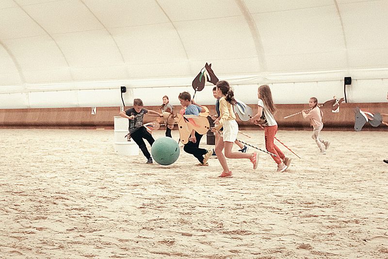 В летнее время и на каникулах проводятся занятия для детей, начиная с двухлетнего возраста. Занятия включают в себя теоретическую часть в классе и практическую на конюшне и в манеже.