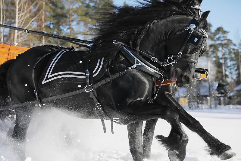 А для тех, кто хочет насладиться прогулкой, предлагается катание на экипажах и санях, запряженных фризами, ведь красавцы этой породы украшают упряжку Золотого экипажа королевы Елизаветы.