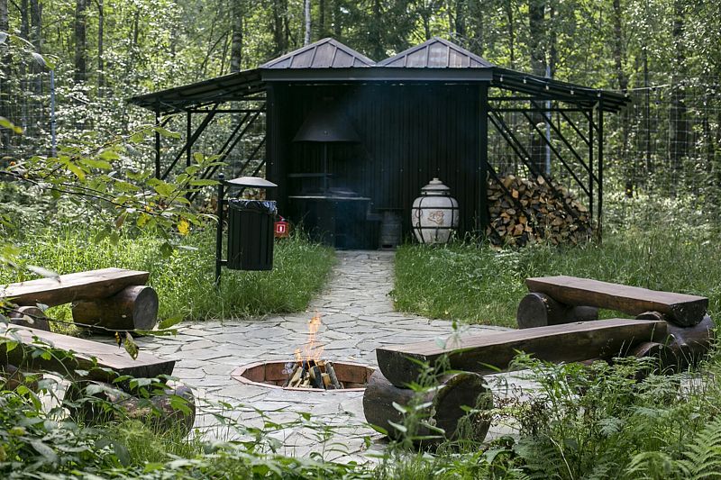 - кострище с уютными мягкими креслами;