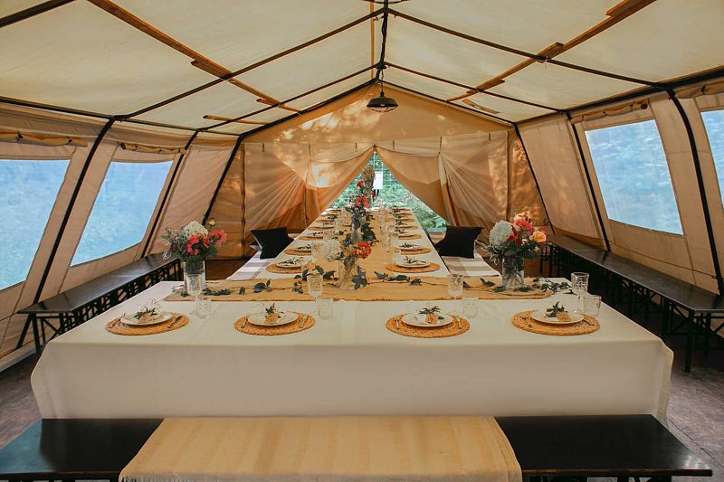 - пати-тент для вечеринок / обеденная зона 47 м2, которая может быть стилизована под ваше мероприятие.